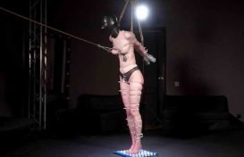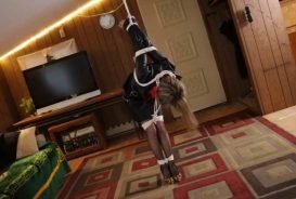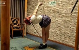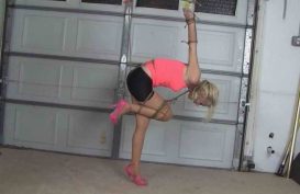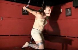 Dragged into the Club House Gia Haze will have to answer to the bosses stung up in a strict strappado