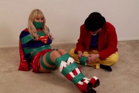 Jamie Knotts and JJ Plush – Batgirl and Supergirl in a in a bind, borntobebound