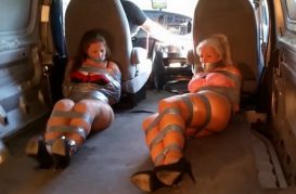 Sandra Silvers and Constance Coyne Duct Taped Damsel Duo Gagged on Screen, Loaded into Van for Delivery