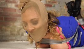 A well dressed Brenda gagged, nylon hooded & hogtaped, milf bondage video