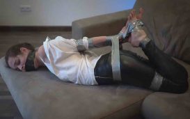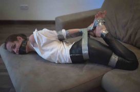 Katrina – MILF taped up in a strict hogtie, jimhunterslair
