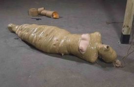 Rachel Adams Taped up and dragged away in a body bag, borntobebound