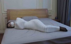 Rachel Adams mummified, mummification bondage, swimwearbondage