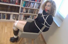 Sweet secretary Helena with glasses chairtied
