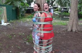 Lingerie bound and lovely Carissa Dumond tied up outside in Florida, borntobebound