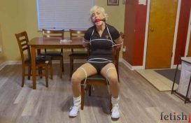 Juniper’s is elbow tied, chair tied, and ballgagged by burglar, jbroper