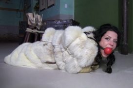 JJ Plush – Gullible, greedy sales woman left bound & gagged in her big fur coat, borntobebound