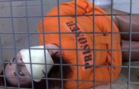 The sexy prisoner Audrey Ashes metal bondage, straitjacketed