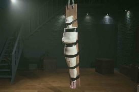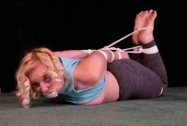 Vivica Lase – Fitness Instructor Gets Bound Hogtied sock gagged and toe tied by the creep