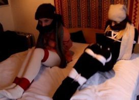 Two tied tights, two ladies bound and wool cleave gagged