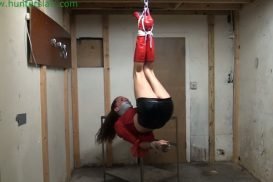 Gia Haze – Hapless girl left hanging upside-down by her boots in the Hunter’s basement, jimhunterslair