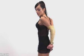 Yelena – brunette extreme vet wrap elbow bondage