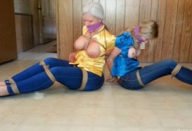 Hooters Girls Sandra Silvers & Vivienne Velvet Held in the Abandoned Trailer! One Hogtied, One Chair tied, Both Microfoam Gagged on Screen
