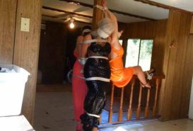 A Bevy of Bound MILF Broads in Ballgowns Held Hostage in Abandoned Trailer, Tied Up and Wrap Gagged