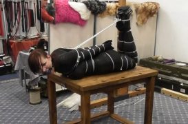 Ziptie strappado & escape attempt for a girdled JJ. ziptie bondage