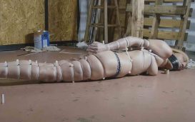 Scarlett – Naked ziptied, hogtied and leather blindfolded