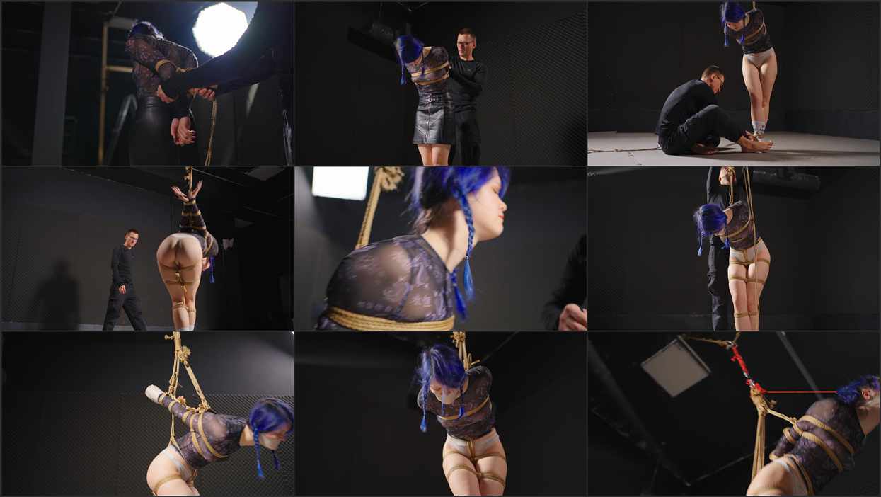 The Master tightly ties the girl’s hands behind her back. To Thea’s surprise, he roughly rips off her skirt. Finding herself bound in her panties in front of us, the girl’s self-confidence fades. She becomes helpless and submissive. The Master continues. He wraps her hands with duct tape and shuts her mouth with tape gag around head. Then the bondage tightens with additional ropes on her legs. A crotch rope deeply diggs in her pussy, causing both painful and arousing sensations.