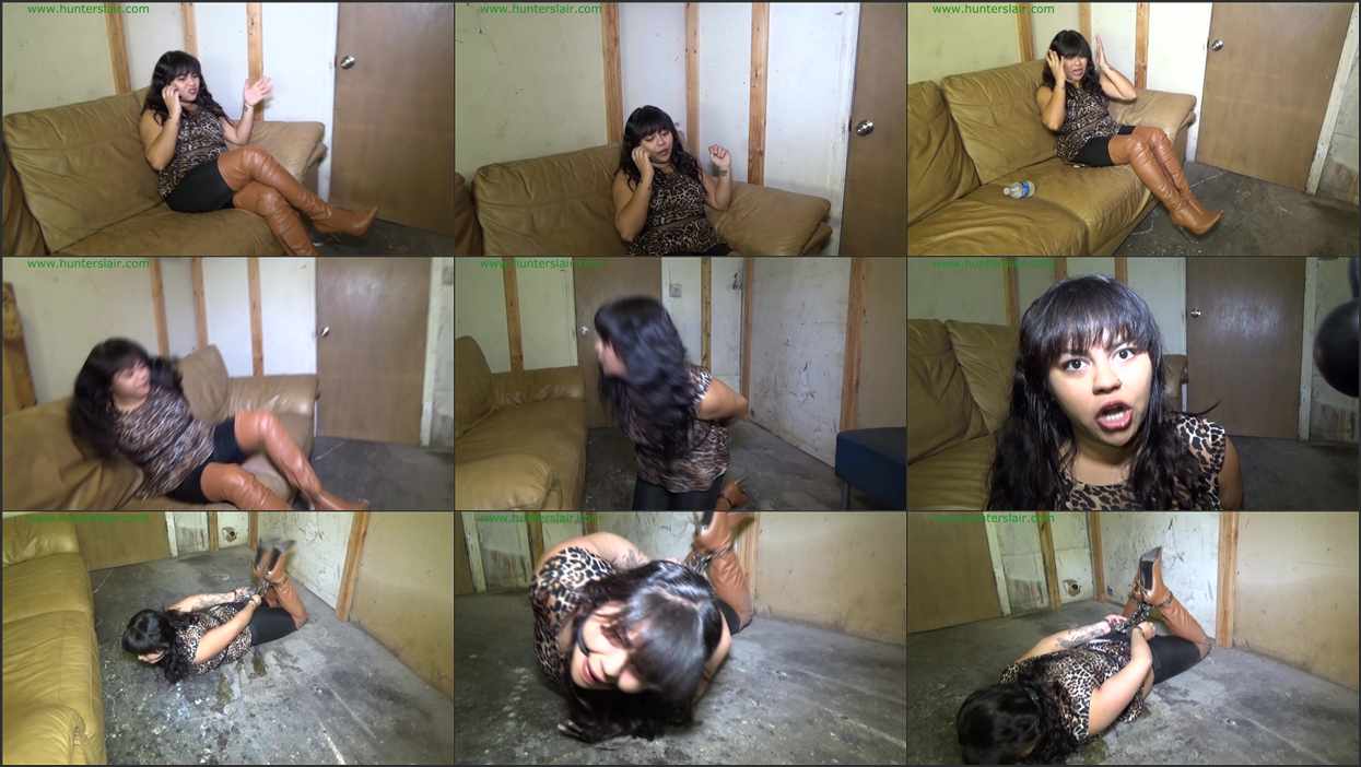 Auntie Vanessa chats on the phone with her girlfriend explaining why she won’t be making it to the party tonight. She was all dressed and ready to go out when her sister called in a panic. She needed Vanessa to watch her neices for the weekend because she got called out of town on business. Then to make matters worse the girls were supposed to go to a XXXX party but instead then got in trouble and are now grounded for the weekend so no XXXX party. The girls are awful quiet making Vanessa suspicious, she calls for them to bring her some water. The girls show up giggling at each other as they hand their pretty Aunt her water. She dismisses the girls back to their room and takes a gulp of water. Vanessa thinks that the water tastes funny and demands to know if the girls did something to her water. She tries to stand but suddenly feels nausous and dizzy. Vanessa slumps back onto the sofa to rest a minute but the room keeps spinning around and around as she fights to keep her eyes open. But then everything goes black. She awakens later still on the sofa moaning as she begins to become aware. She feels tight steel bands around her wrists and tries to move her hands but realizes that the girls have handcuffed her hands behind her back with a pair of steel police handcuffs. She looks down to see her booted ankles locked tightly together with another set of handcuffs. Vanessa struggles on the sofa calling for the girls to come back in here and take off the cuffs…